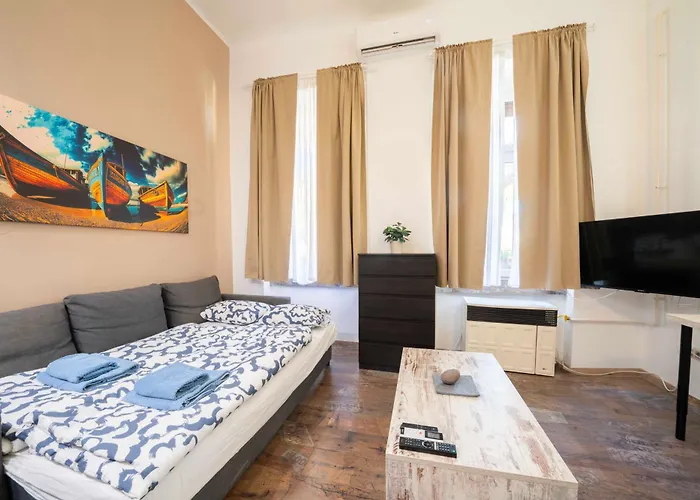 El 2Br Party District Apartment K29 Budapest, situado a unos 15 minutos a pie de la Casa del Terror, se encuentra a a tan solo 1 km de un importante lugar para familias como el Ojo de Sziget.